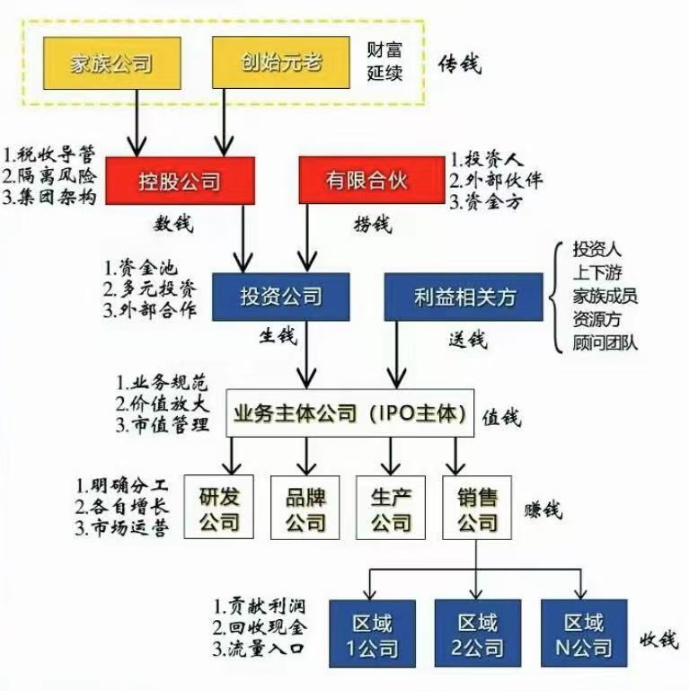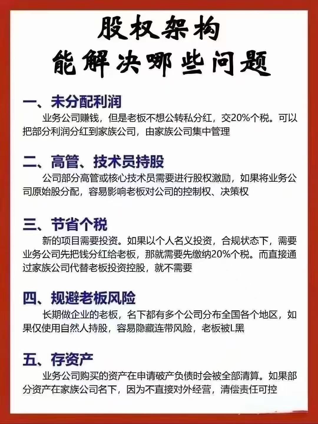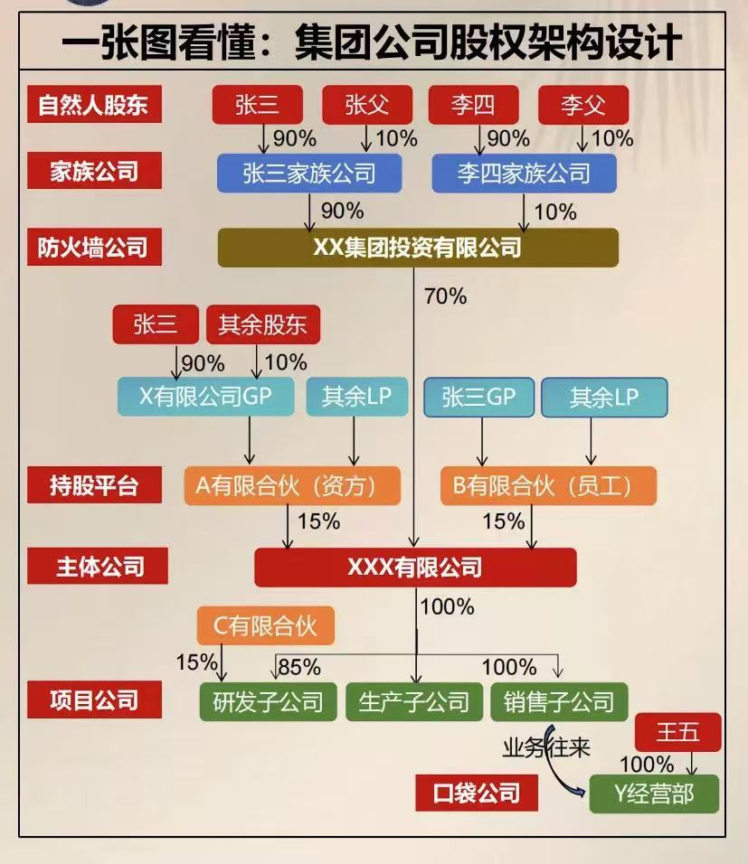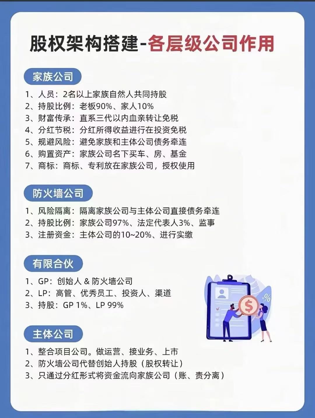 2、股权架构:如何把财富搬到家族公司里?员工持股平台、创始合伙团队、控股公司、上下游公司、投资机构主体公司如何持股?防火墙设计?